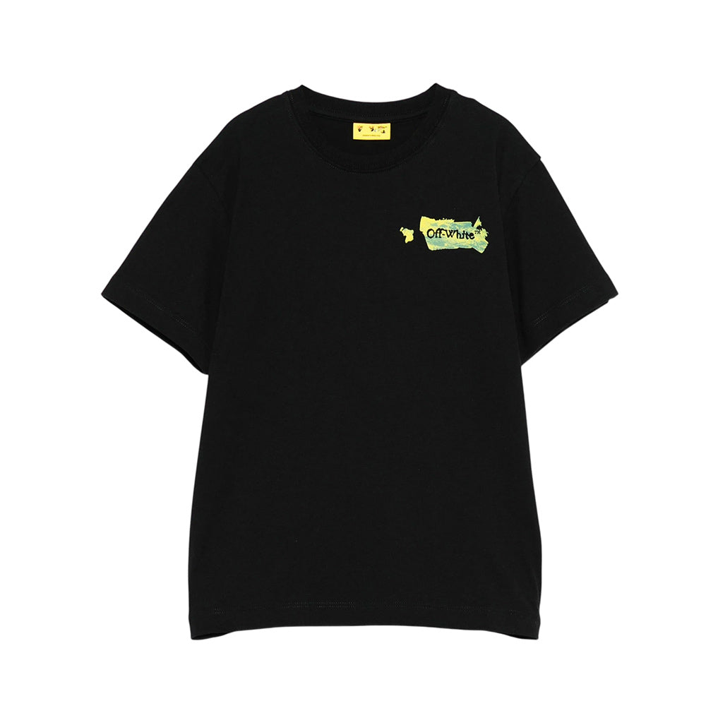 T-shirt realizzata in jersey di cotone, caratterizzata da collo rotondo a costine, maniche corte e orlo dritto. È decorata con logo Off-White stampato sul petto e con motivo a freccia sul retro.