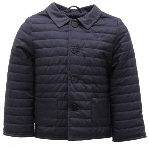Gesteppte Babyjacke, Jackenmodell, Verschluss vorne mit Knöpfen, aufgesetzte Taschen vorne.