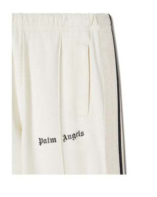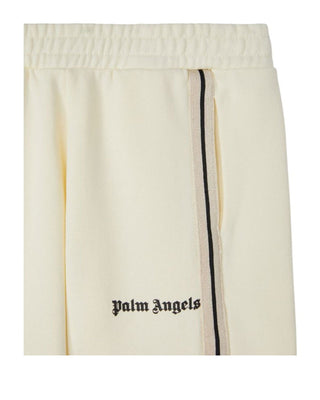 Pantaloni track di Palm Angels con triplo elastico in vita, bande in maglia écru laterali, due tasche a filo e logo Palm Angels ricamato sul davanti.
