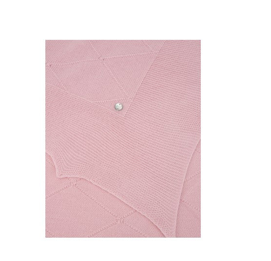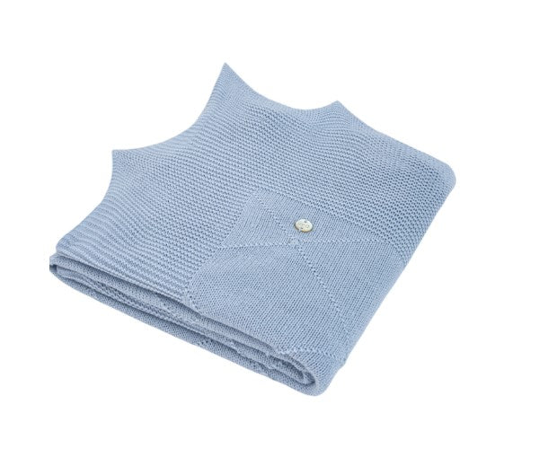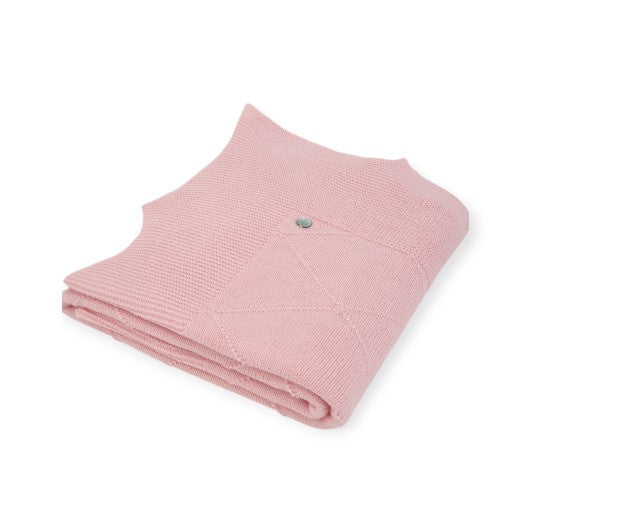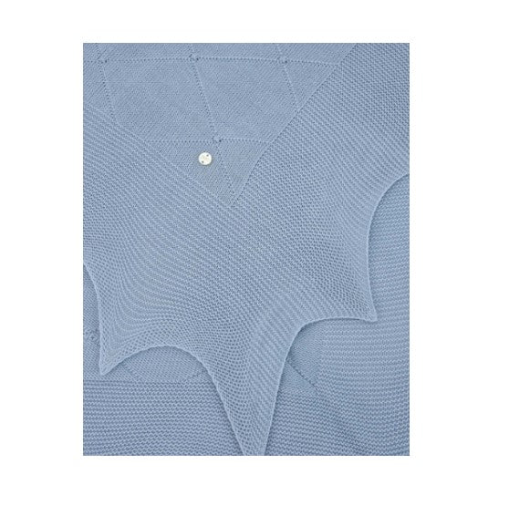 Gestrickter Bezug mit farblich abgestimmtem Rautenmuster, abgerundet mit Spikes. Mit den Maßen 105 x 105 cm ist es ideal, um Ihr Baby von den ersten Tagen an warm eingepackt in Ihren Armen zu halten