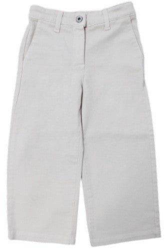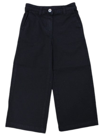 Hose aus leicht elastischem Stoff, schräge Tasche, Gesäßtaschen, Reißverschluss und Knopfverschluss, weites Bein.