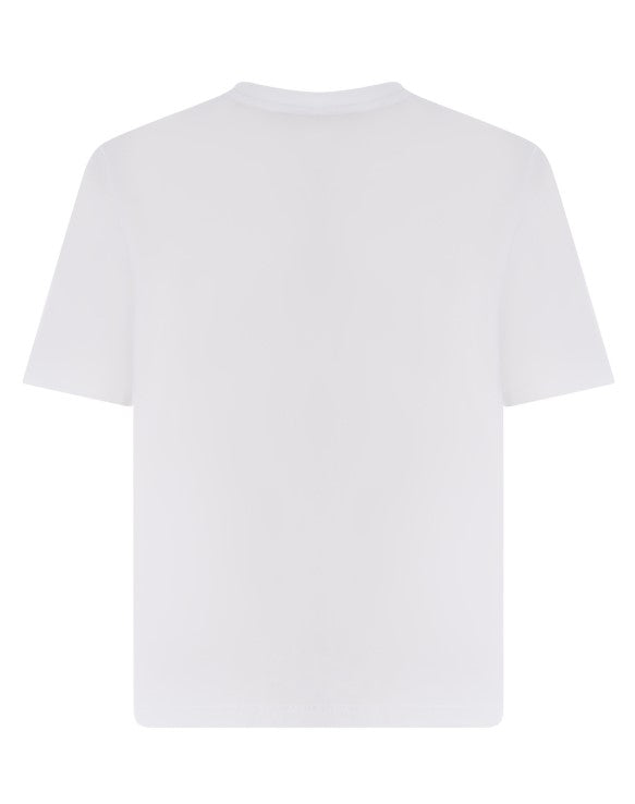 T-Shirt mit Rundhalsausschnitt, kurzen Ärmeln und Logodruck auf der Vorderseite.
