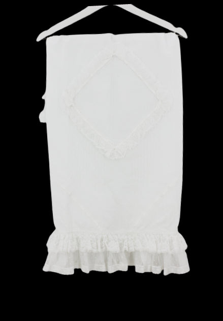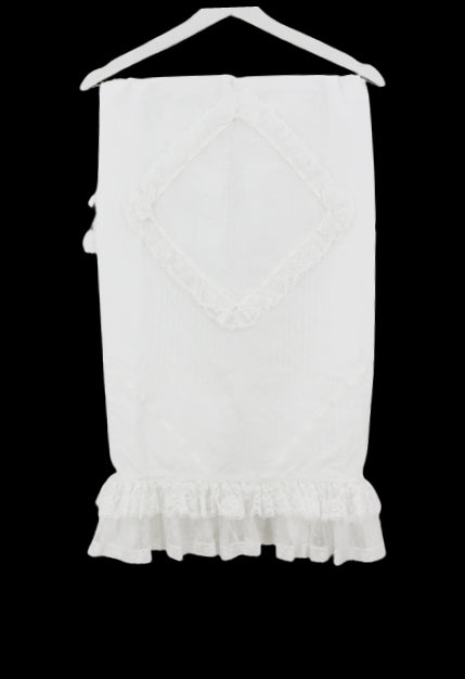 Aletta-Decke aus weißer Baumwolle mit gepunktetem Schleier. Modell mit Spitzenbordüre und zentraler Raute.