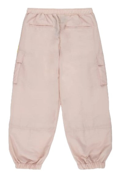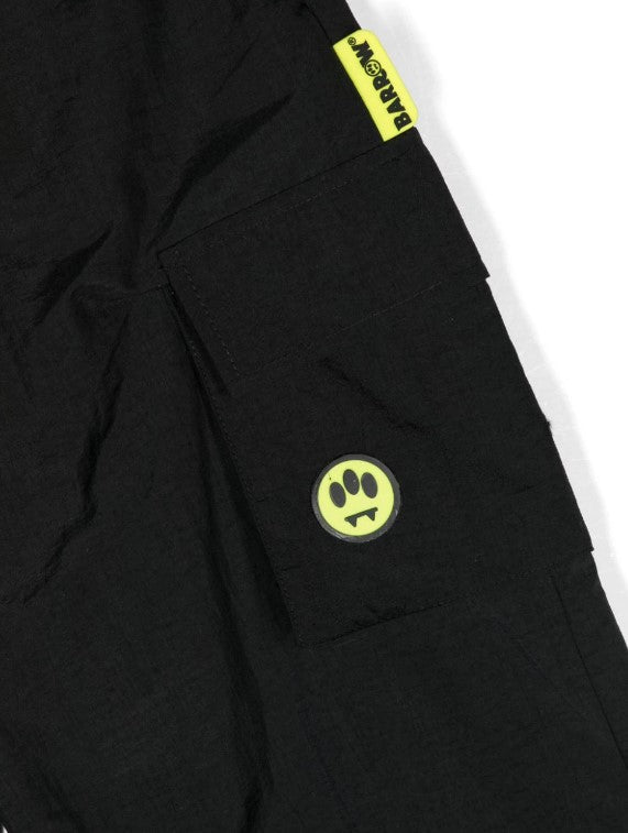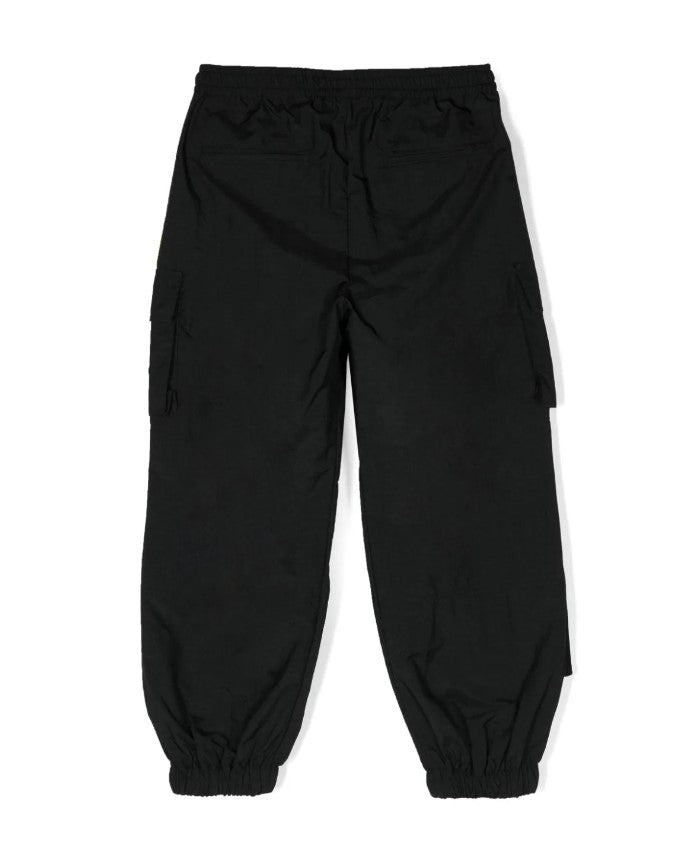 Cargohose aus Nylon, elastische Taille und Knöchel, seitliche America-Taschen, Logo auf der großen Cargotasche.