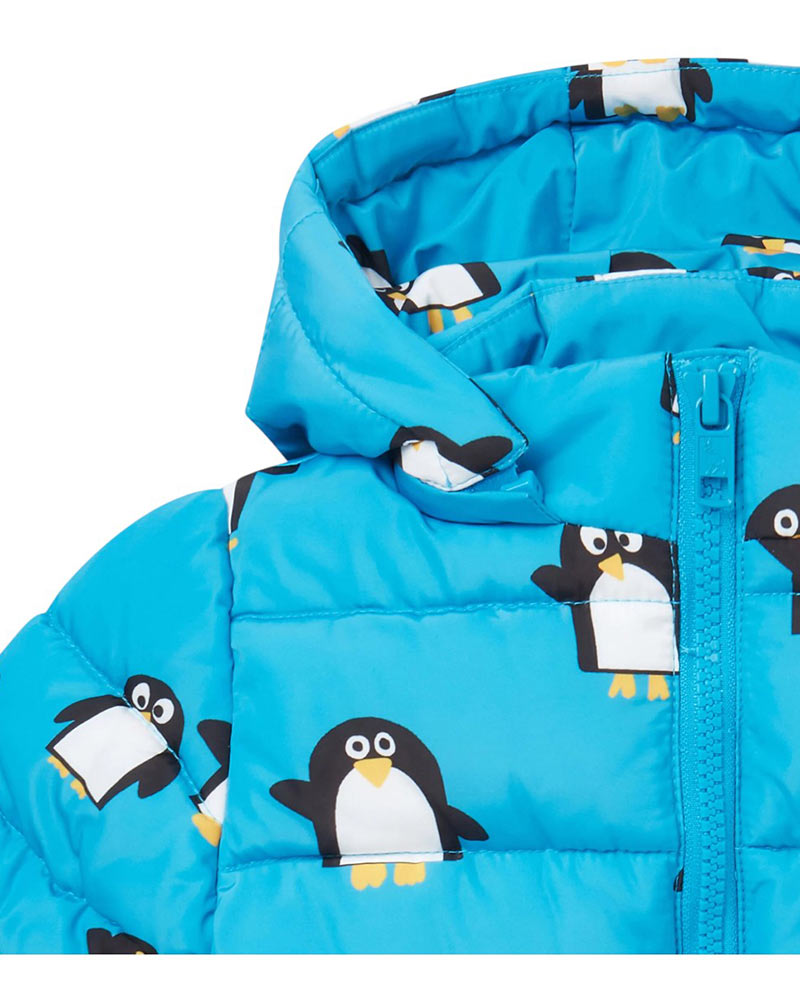 Steppjacke mit abnehmbarer Kapuze für Neugeborene, Reißverschluss vorne, seitliche Amerika-Taschen, Allover-Muster.