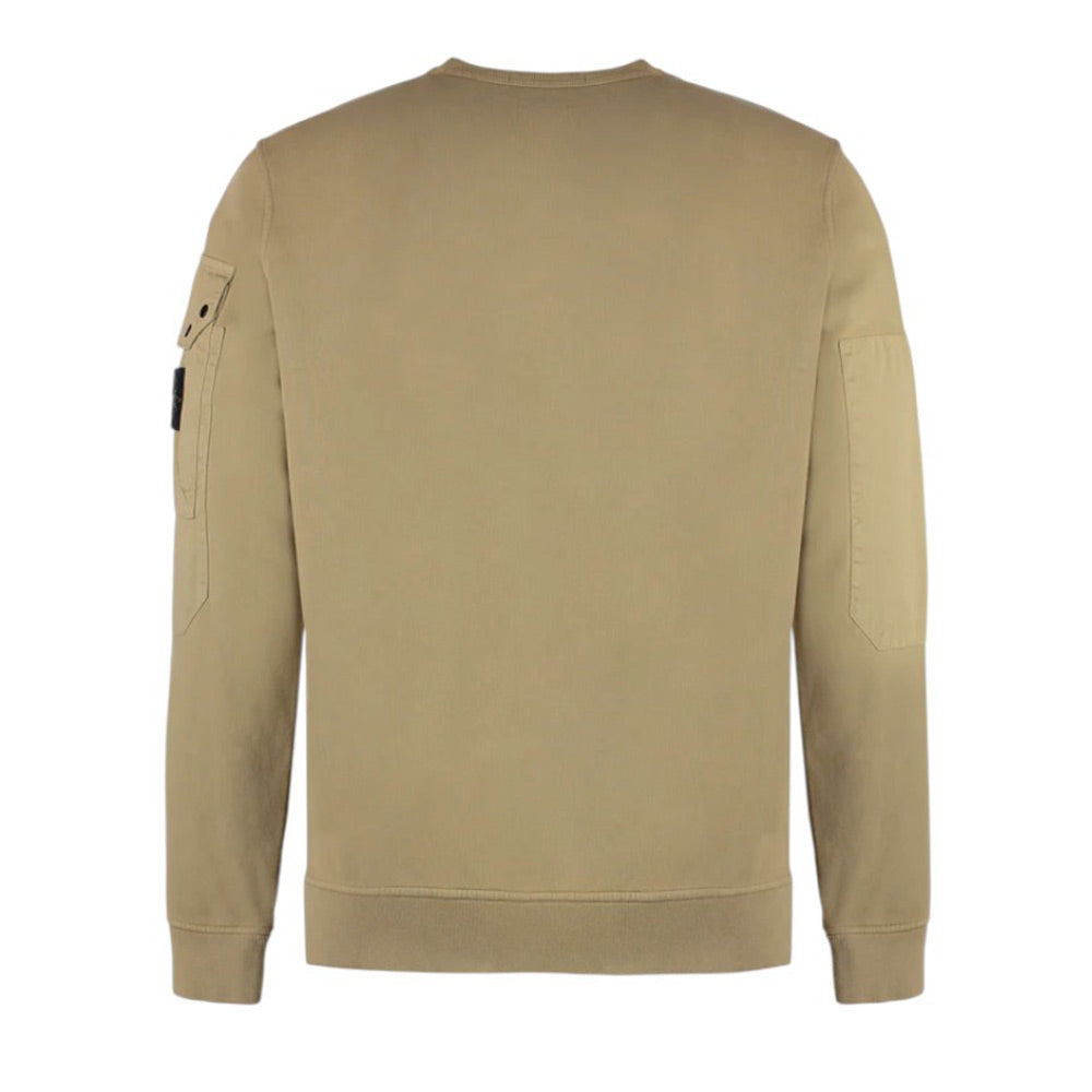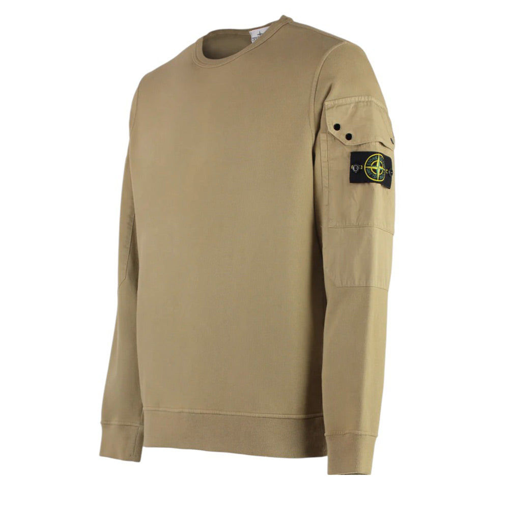 Felpa realizzata in cotone garzato, caratterizzata da collo rotondo, maniche lunghe, fodera in pile e finiture a coste. È decorata con inserti in popeline sulle maniche e Badge Stone Island.
