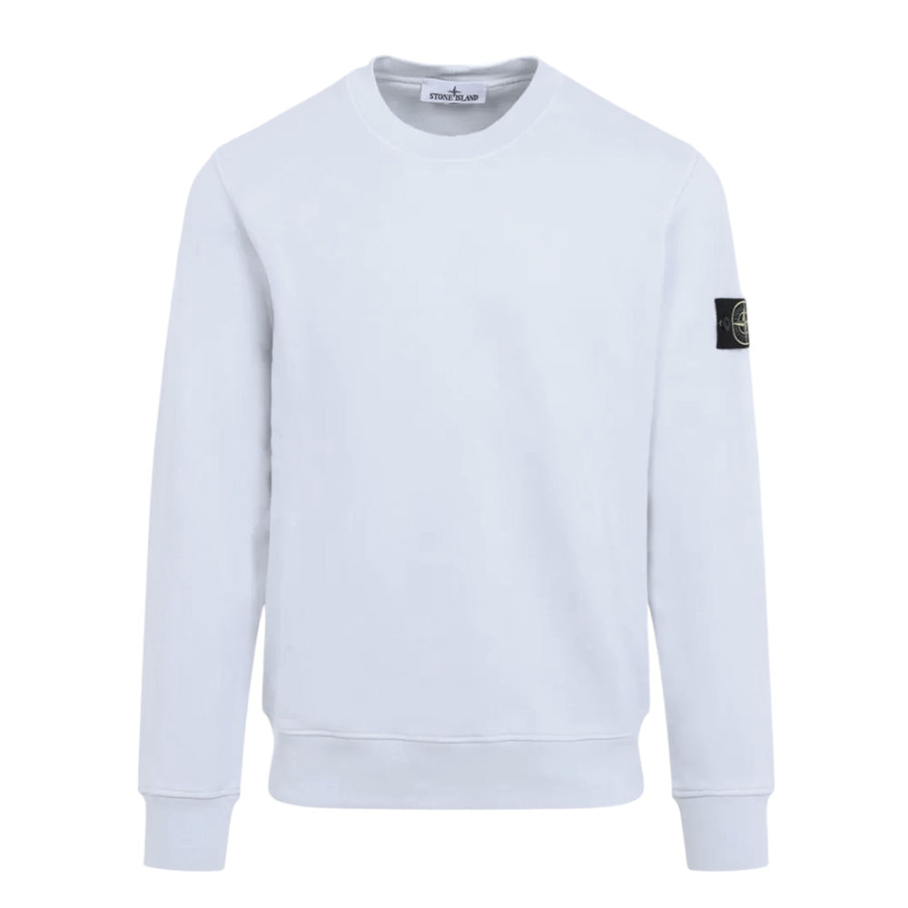 Felpa realizzata in cotone sgarzato, caratterizzata da collo rotondo, maniche lunghe e finiture a coste. È decorata con Badge Stone Island applicata sulla manica.
