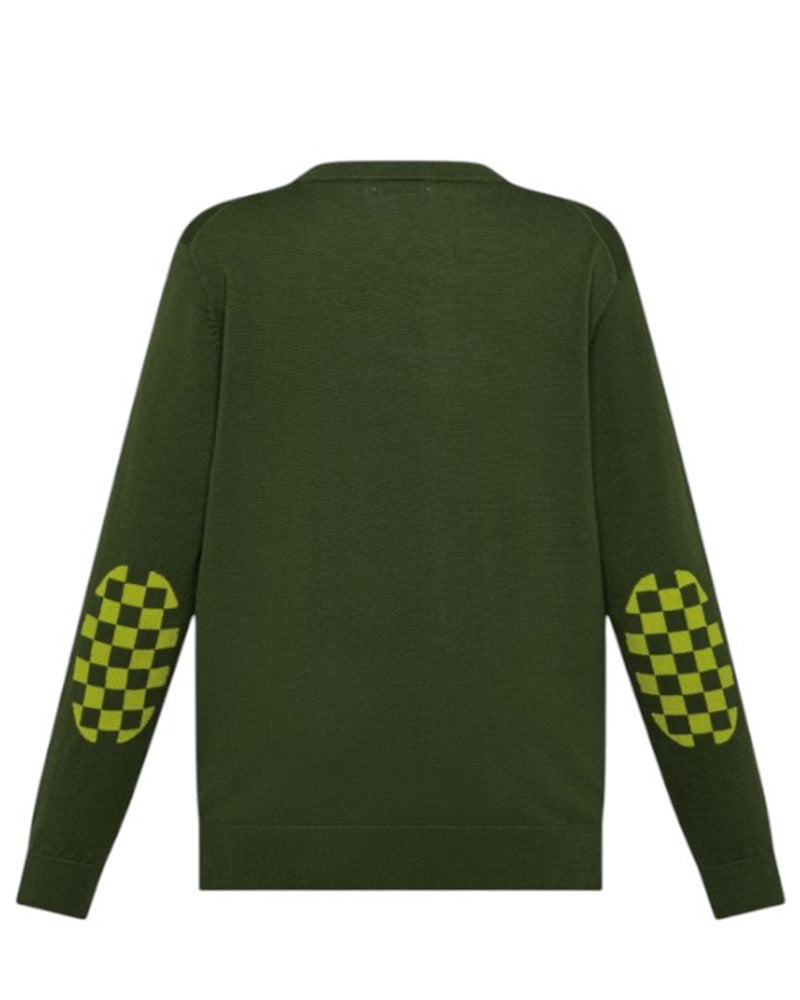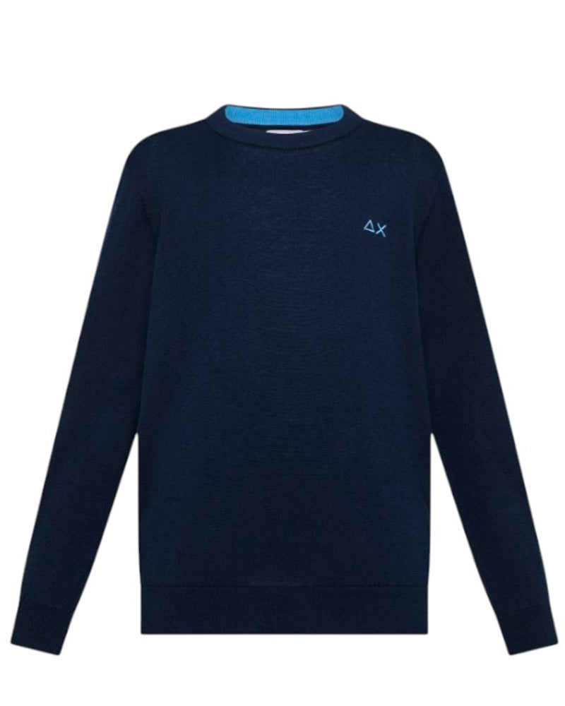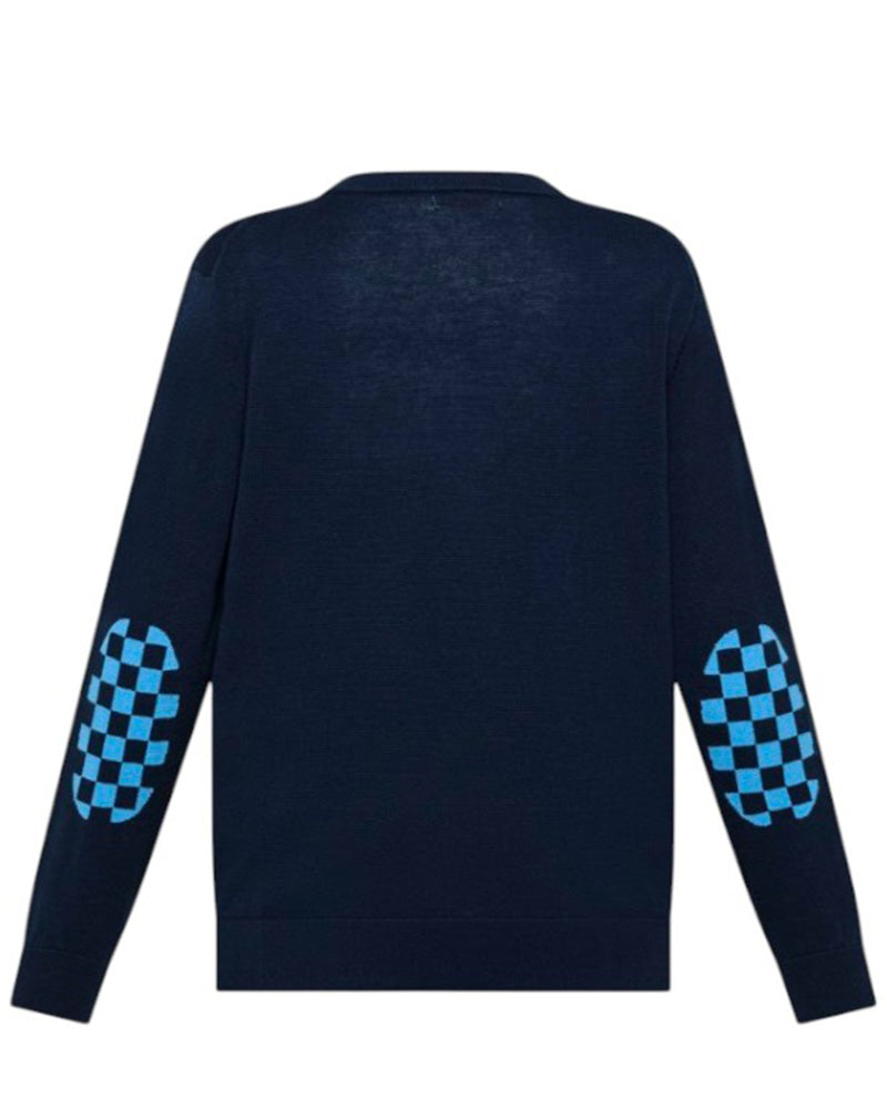 Maglia realizzata in filato di cotone da bambino. Presenta collo tondo, maniche lunghe con patch sui gomiti e finiture a coste. È decorata con logo ricamato sul petto.