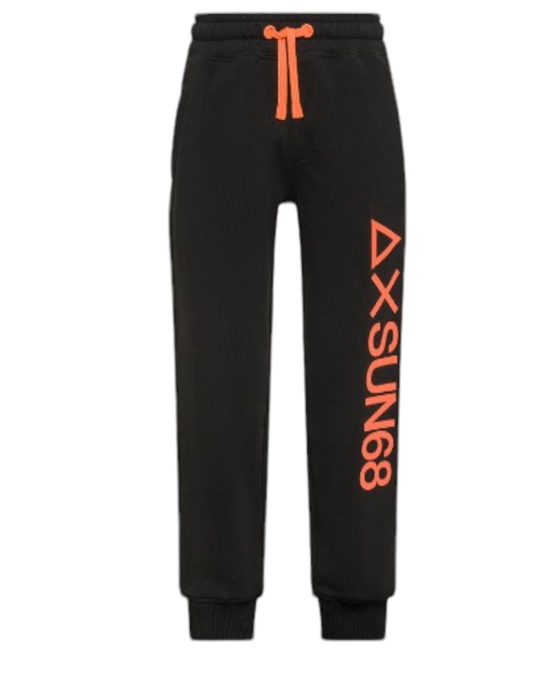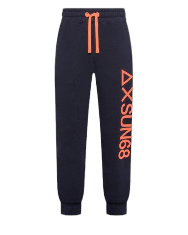Jogginghose aus Baumwollfleece, elastischer Einsatz mit kontrastierendem Kordelzug in der Taille, Seitentaschen, elastische Knöchel, gummierter SUN68-Logodruck auf der Vorderseite.