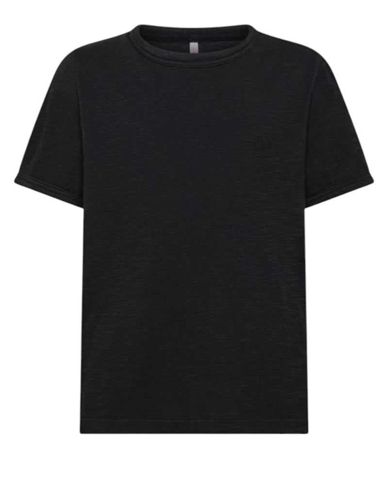 T-shirt girocollo a maniche corte realizzata in jersey di cotone effetto fiammato. È decorata logo ricamato tone on tone sul petto.