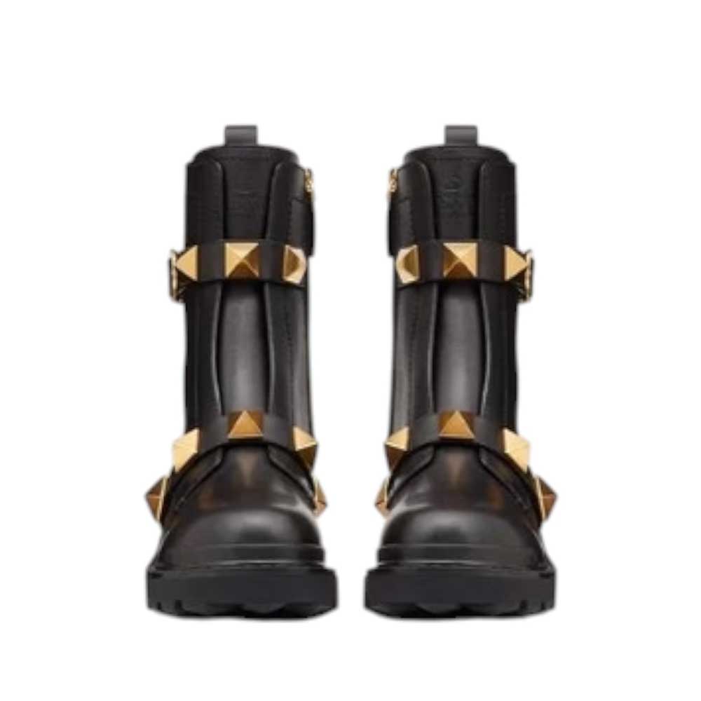 Valentino Garavani Stiefel aus Kalbsleder mit Riemen mit Maxi-Nieten.