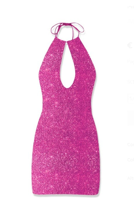Abito mini realizzato in tessuto lurex goffrato, scollo a goccia, schiena scoperta, chiusura dietro al collo tramite laccetti sottili, label St Barth sul retro. Vestibilità aderente, regular Fit.