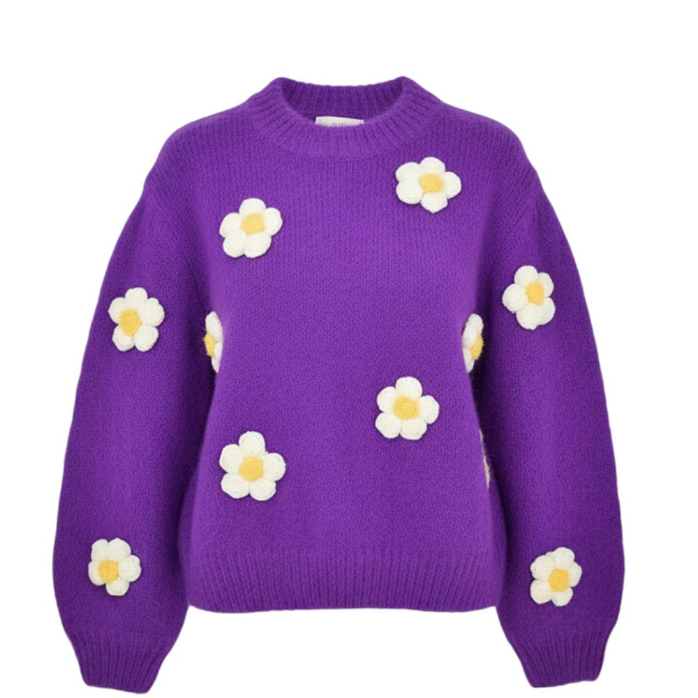 Mc2 Saint Barth Maglia viola in misto alpaca con fiori DANY003-00408C