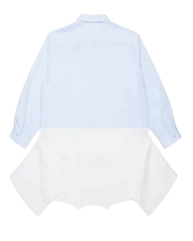 Abito da bambina realizzato in popeline di cotone. Presenta coletto a punta, chiusura frontale con bottoni, maniche lunghe e gonna in jersey di cotone con finitura a taglio vivo. È decorato con logo stampato sulla parte anteriore.