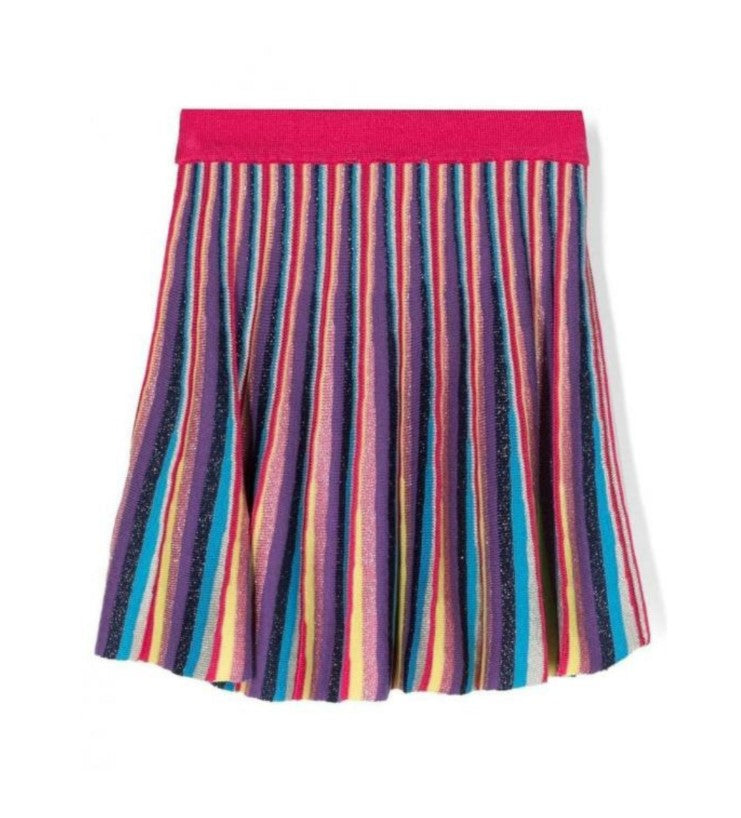 Gonna longuette con elastico in vita, fantasia a righe multicolor.