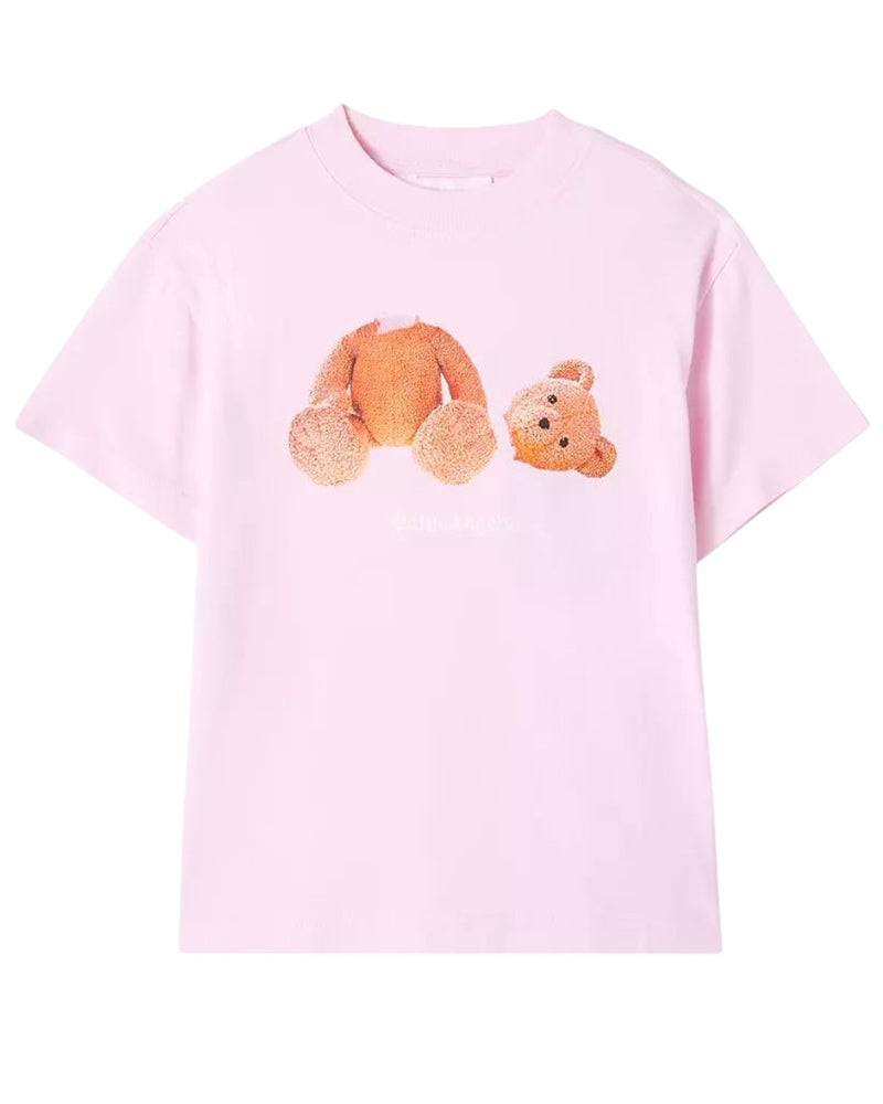 Palm Angels T-shirt rosa in jersey con stampa Bear e logo PGAA002C99JER0083B03