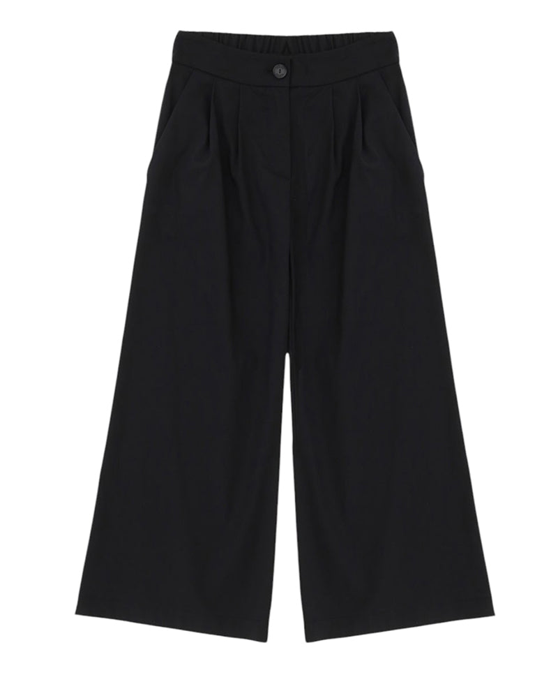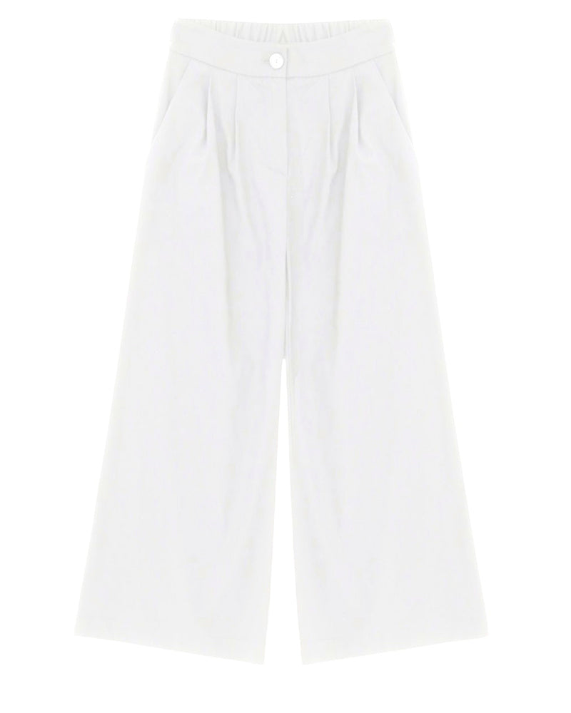 Pantaloni realizzati in cotone, vista elasticizzata, chiusura con bottone e zip.