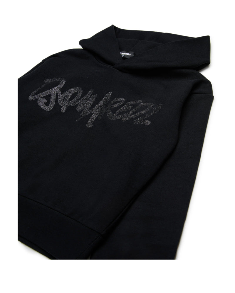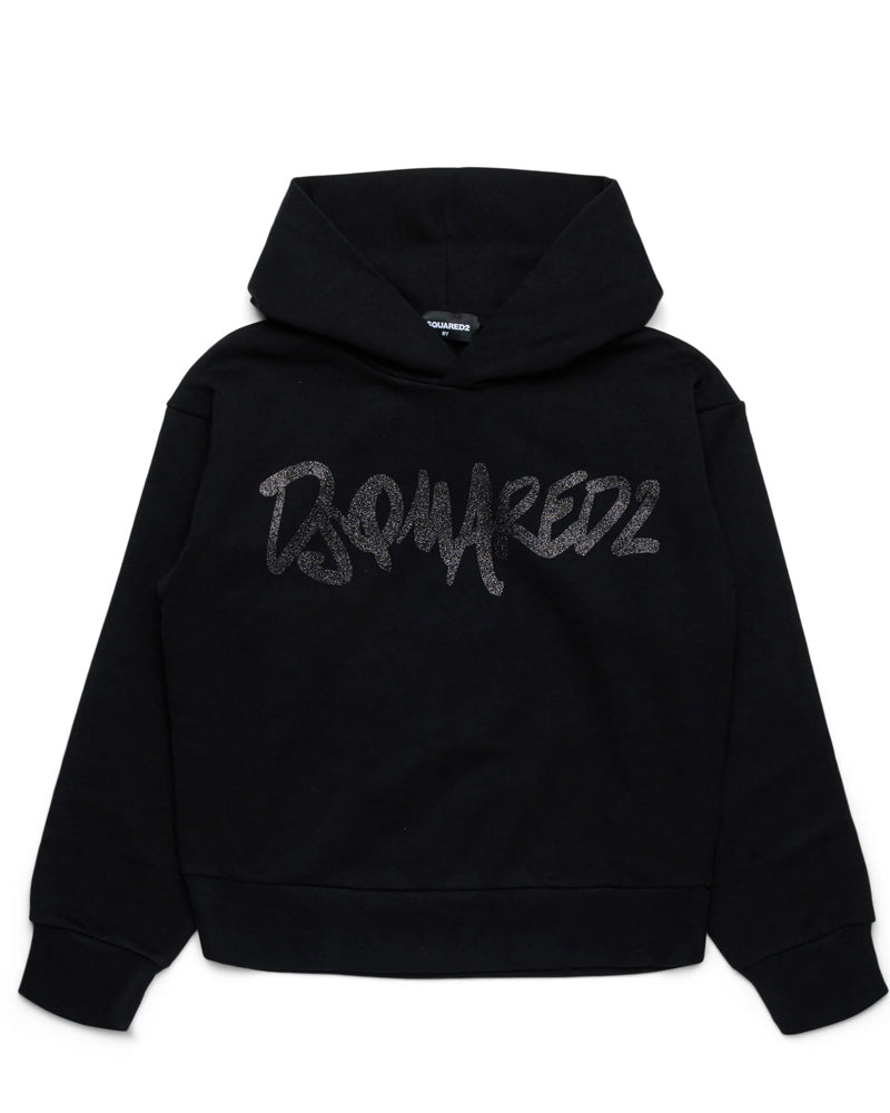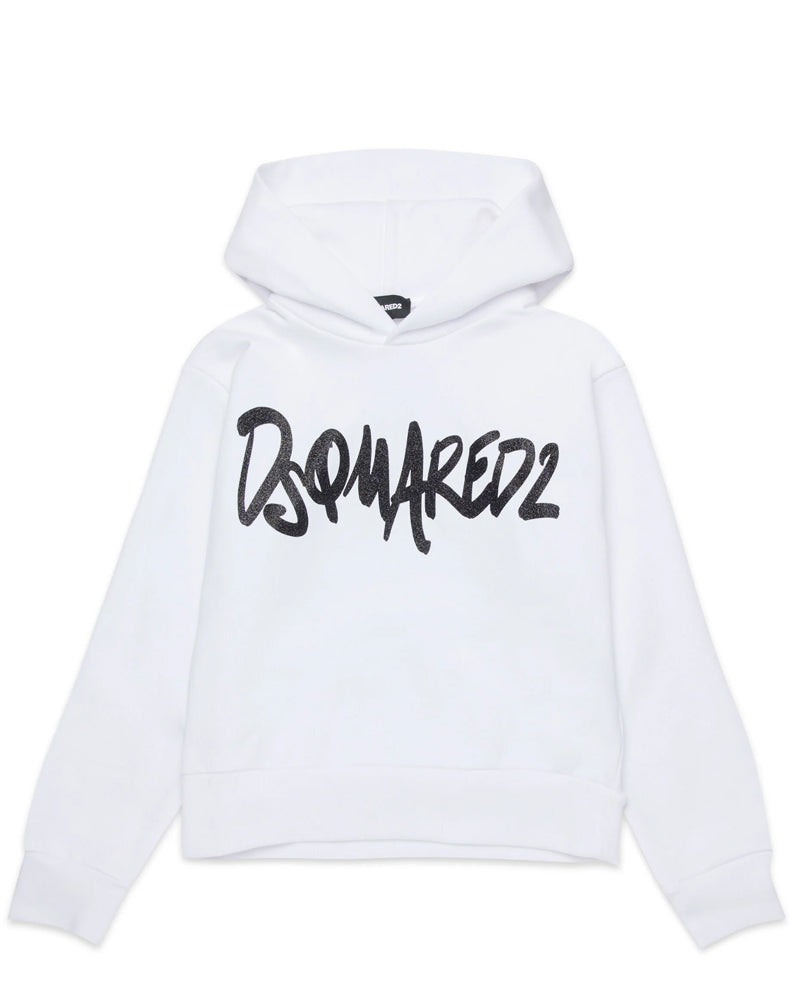 Felpa a maniche lunghe con cappuccio. Logo Dsquared2 con strass applicati sul davanti. Lavorazione a costine su polsini e fondo.