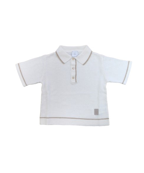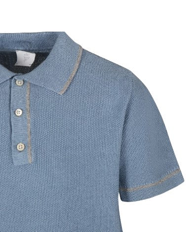 T-shirt a polo in filo di cotone, patta frontale con i bottoni. Orlo, collo e manica in contrasto, logo applicato sul davanti.