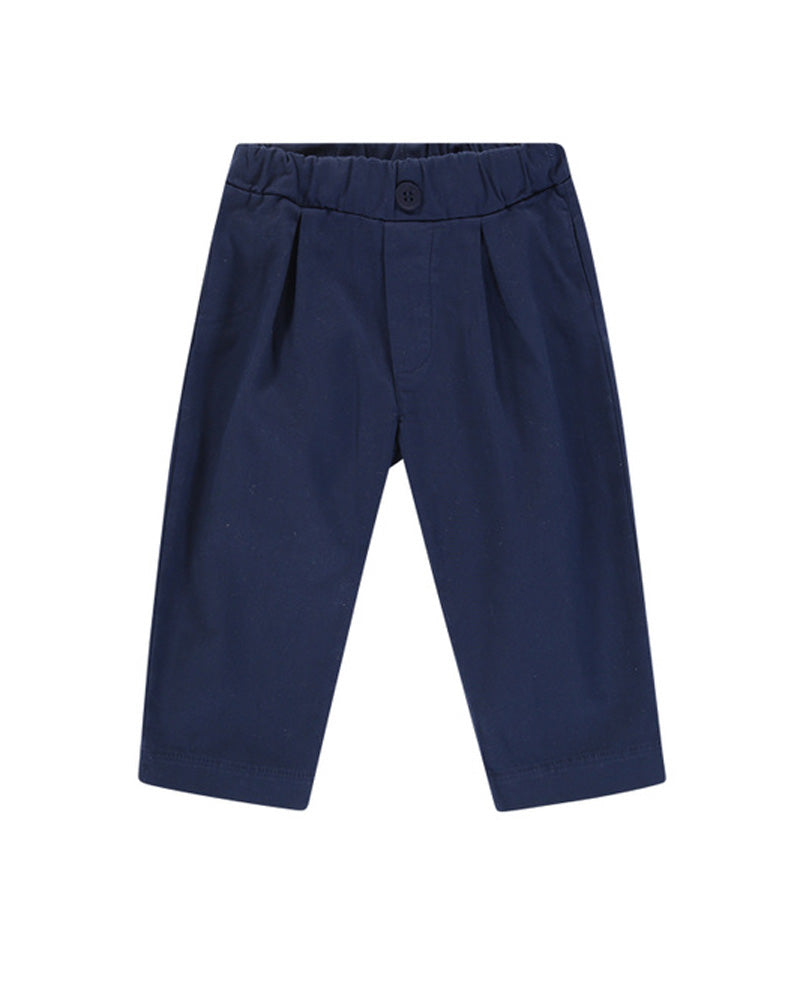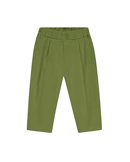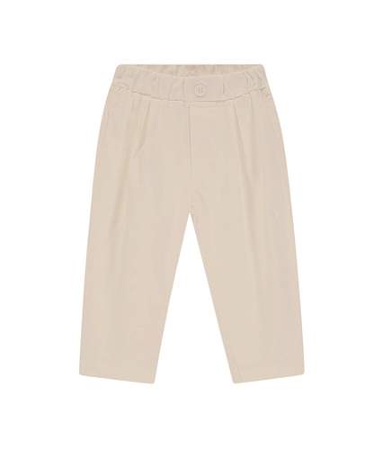 Pantaloni in cotone con vita elasticizzata, bottone decorativo sul davanti, pinces sul davanti, taschine a filo.