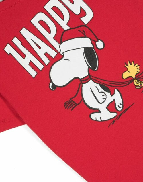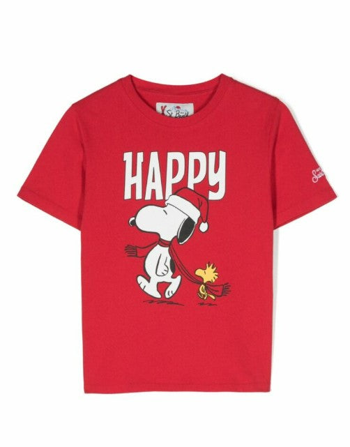 T-shirt da bambino girocollo a manica corta in cotone con stampa Snoopy sul davanti, logo ricamato in contrasto sulla manica.