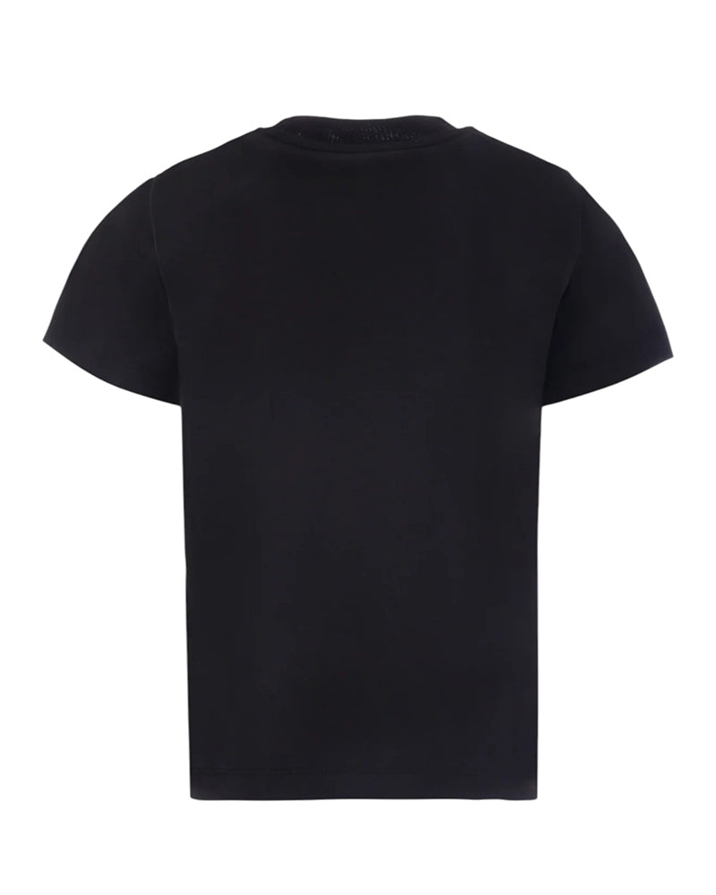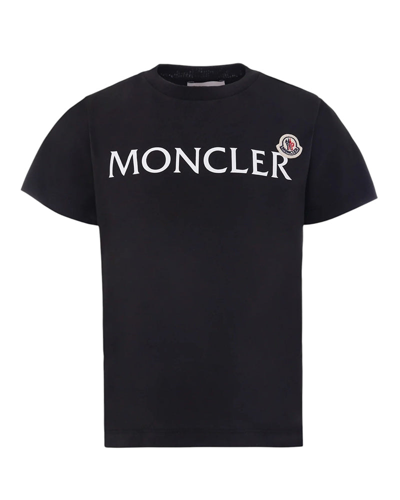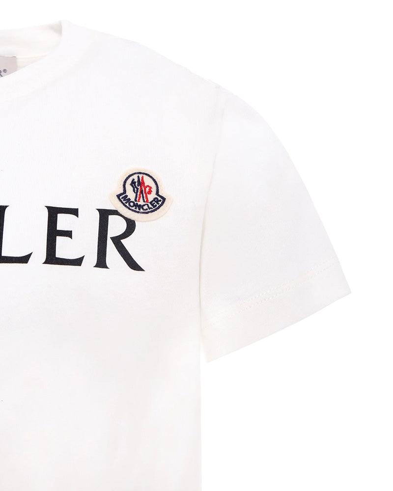 T-shirt del luxury brand Moncler Kids realizzata in jersey di cotone, caratterizzata da collo tondo, maniche corte e orlo dritto. È decorata con logo stampato sulla parte anteriore e con patch logo applicata sul petto.