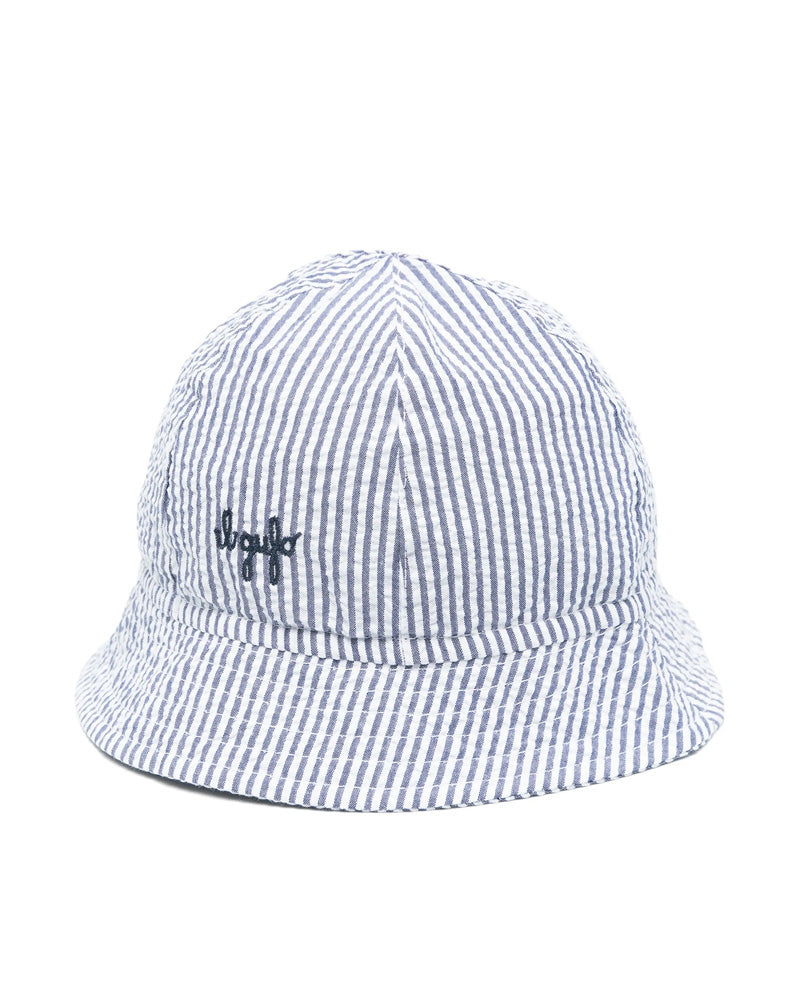 Cappello bucket con motivo a righe verticali, arricchito da ricamo con logo sul fronte.