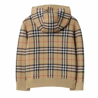 Burberry Cardigan beige in lana Check con zip e cappuccio 8104314