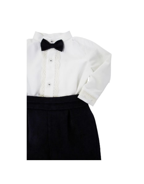 -camicia in franella avorio a maniche lunghe con fasce in pizzo;