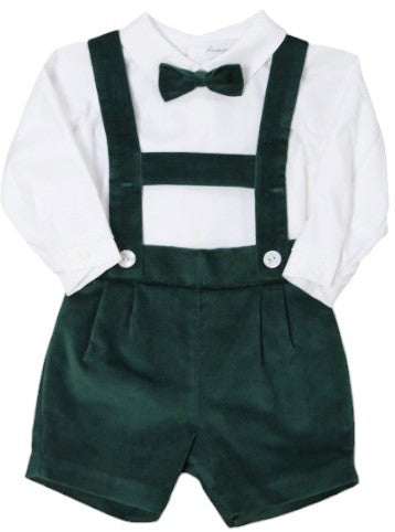 3 pezzi pantaloncino a tre quarti con bretelle in stoffa camicia flanella in cotone e papillon unito da bottoncini di madreperla