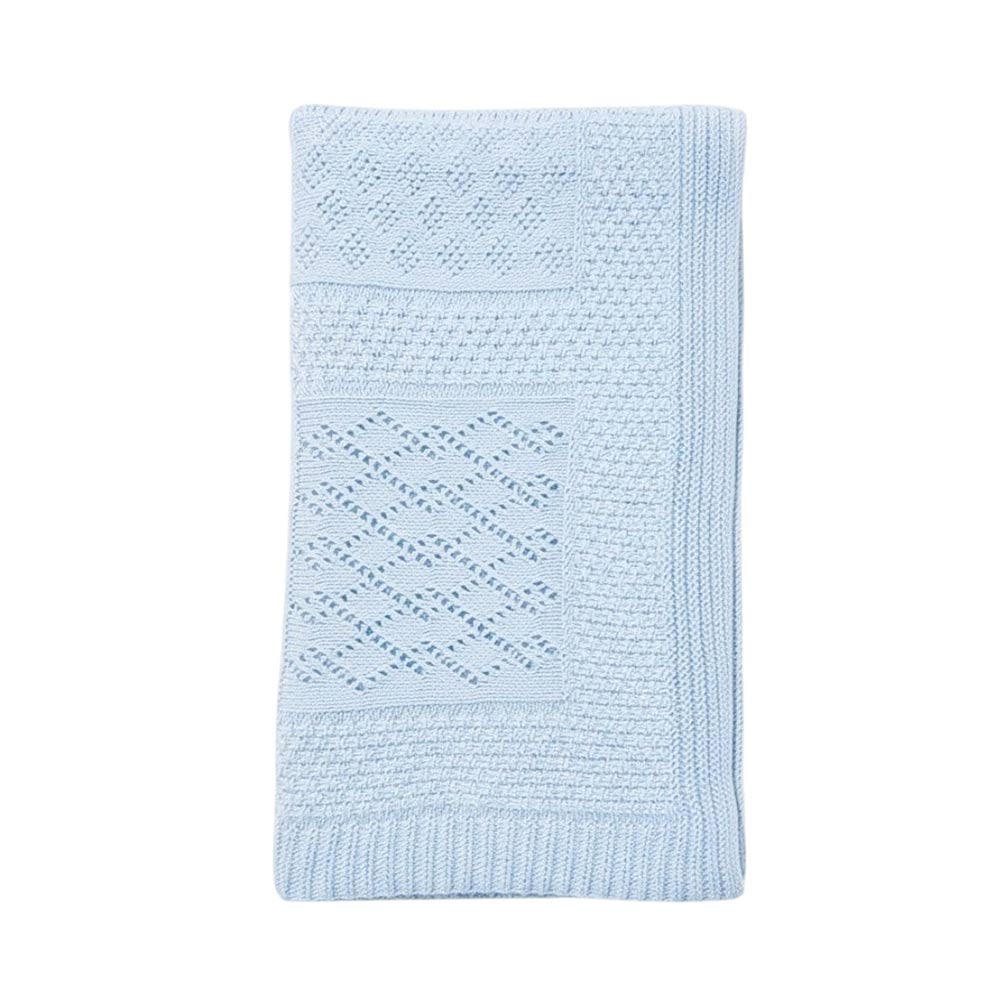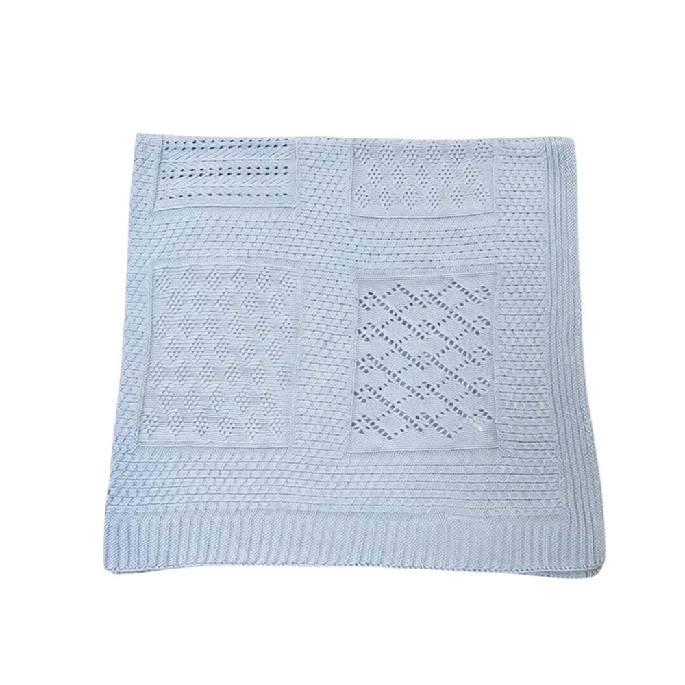Copertina realizzata in misto lana, con design traforato e dettagli a rombi e nodini. Rifinita con bordo smerigliato.