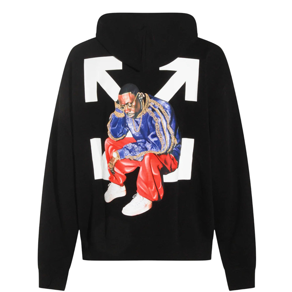 Off-White Felpa nera con cappuccio e stampa OMBB085F25FLE00C1001