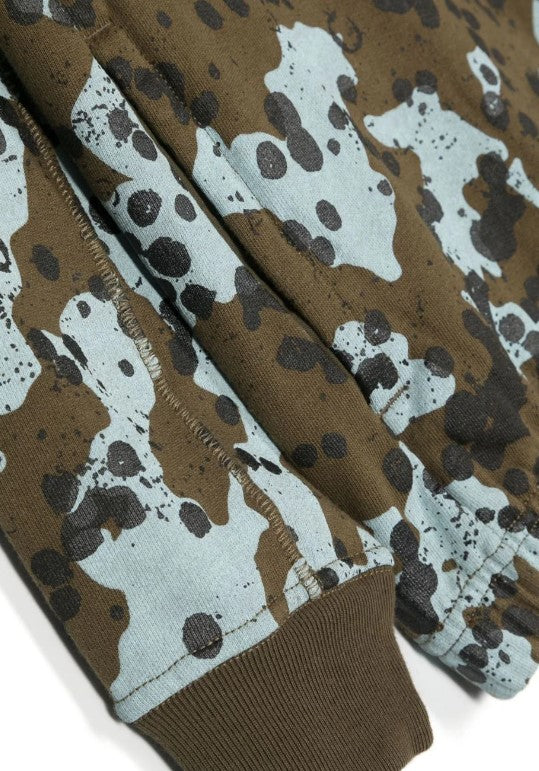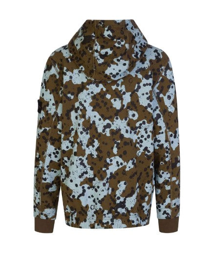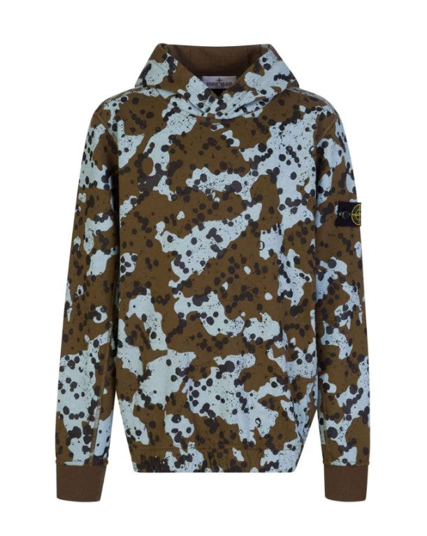 Felpa con cappuccio a manica lunga, stampa astratta all over, patch logo applicato sulla manica, polsi in costa ed orlo elasticizzato.