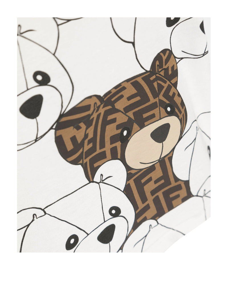 T-shirt con stampa Teddy Bear e motivo FF, scollo rotondo e maniche corte. L'orlo è dritto e la chiusura posteriore è caratterizzata da un bottone a pressione.