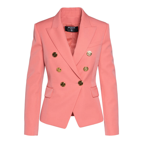 Giacca doppiopetto da bambina, chiusura frontale con bottoni color oro, due tasche applicate con patta sul davanti e bottoni sui polsi.