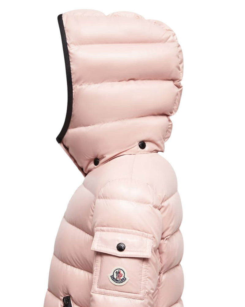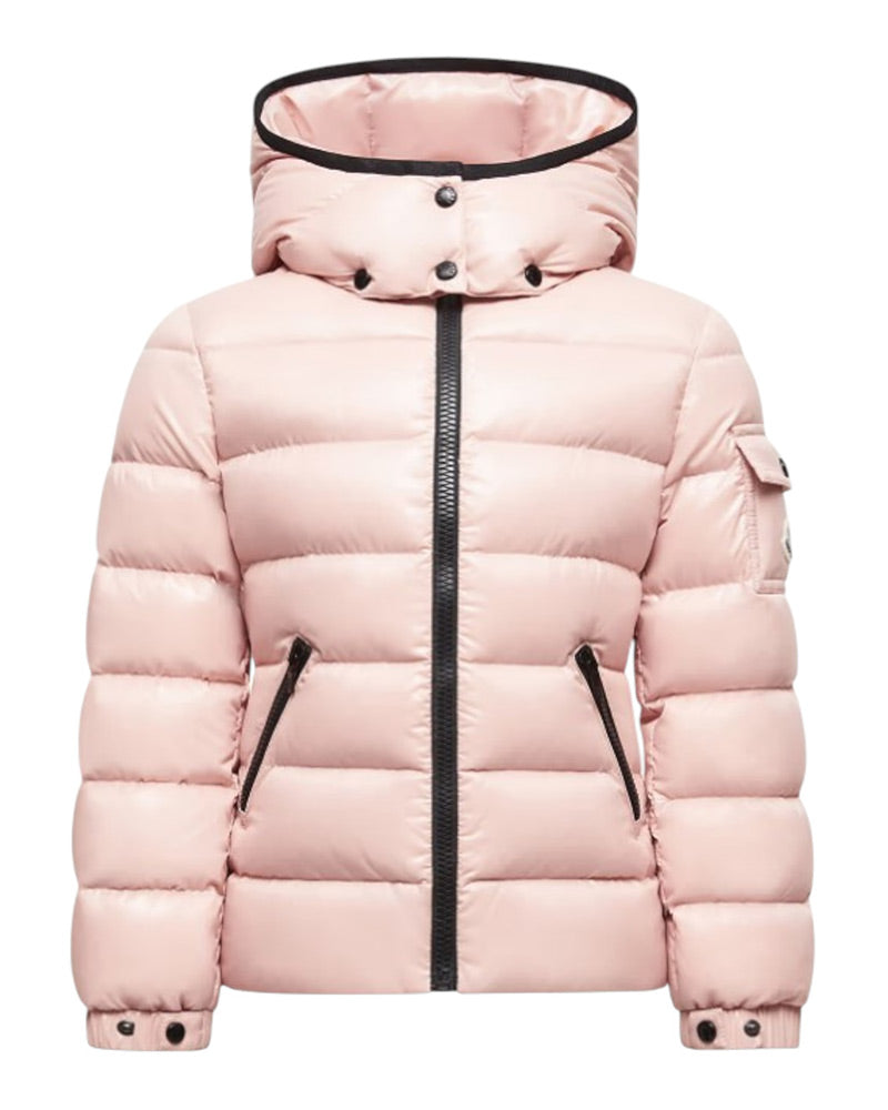 Giubbino imbottito Bady del luxury brand Moncler, realizzato in nylon laqué. Presenta design trapuntato, cappuccio rimovibile, chiusura frontale con zip, maniche lunghe con polsi elasticizzati, due tasche frontali all'americana con zip e orlo dritto. È decorato con patch logo applicata sulla manica.