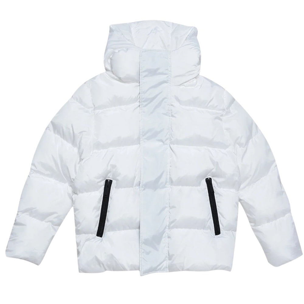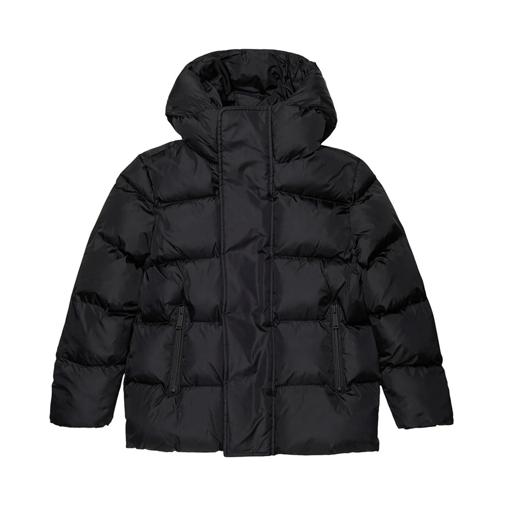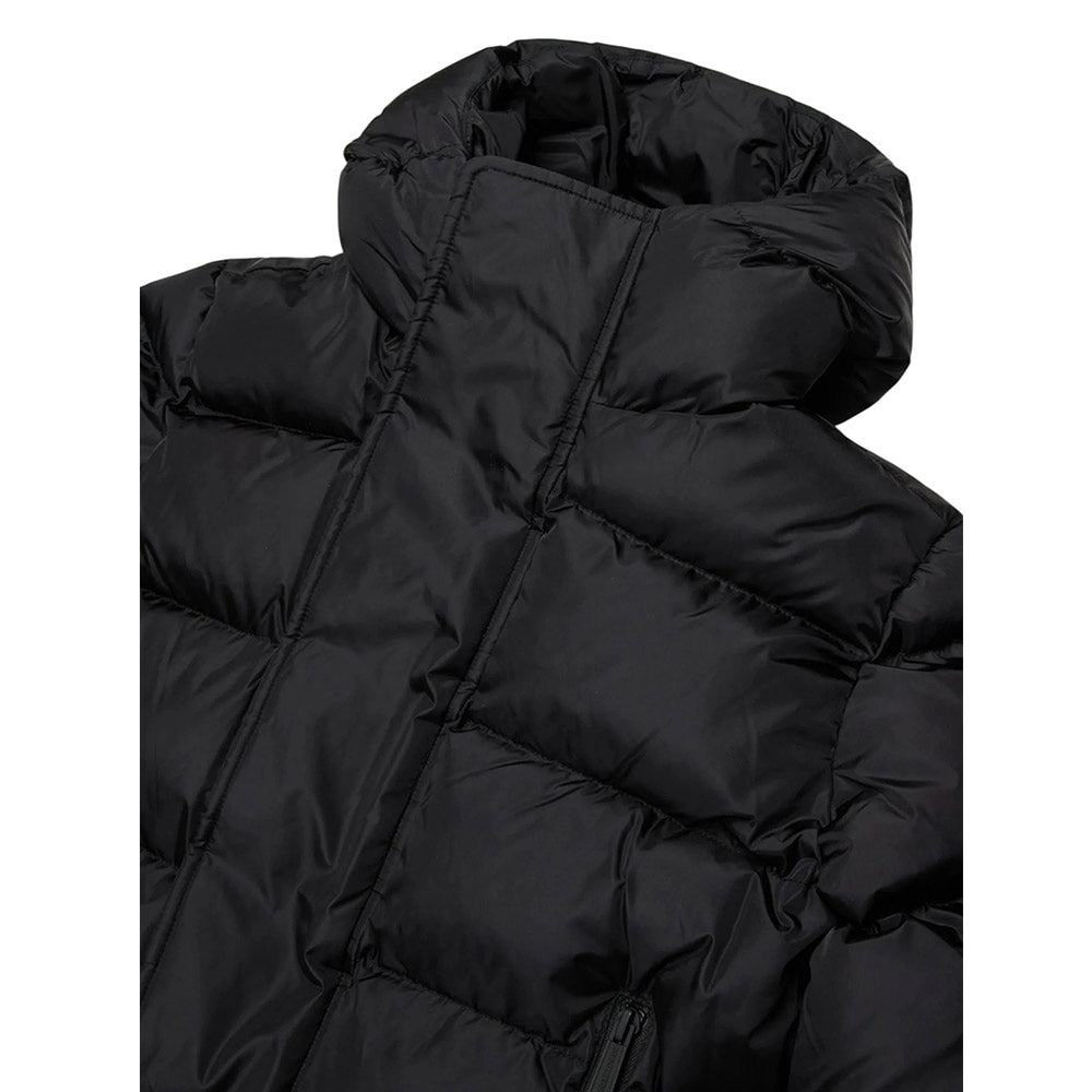 Giubbino imbottito realizzato in nylon. Presenta design trapuntato, cappuccio fisso, chiusura frontale con zip e velcro, maniche lunghe con polsi a coste e due tasche laterali a filetto con zip. È decorato con logo stampato sul retro.