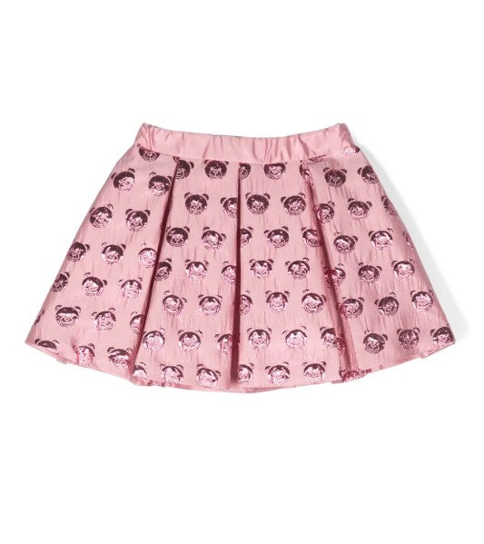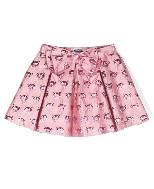 Gonna plissettata con vita elasticizzata, stampa Teddy all-over, dettaglio fiocco sul davanti, chiusura laterale con zip nascosta.