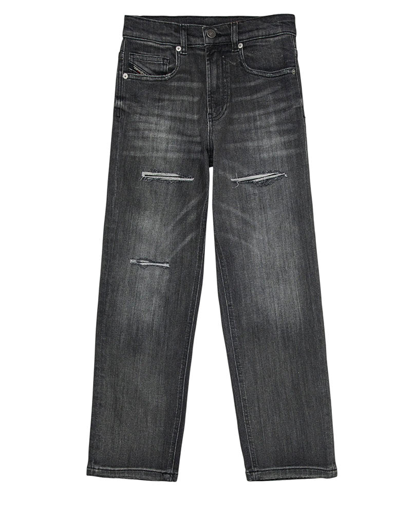 Jeans D-Maki dalla vestibilità comoda in denim grigio scuro con strappi. Modello cinque tasche. Chiusura frontale con bottone e zip, passanti per la cintura, vita regolabile grazie ad elastico interno con bottoni e label logo applicata sul retro.