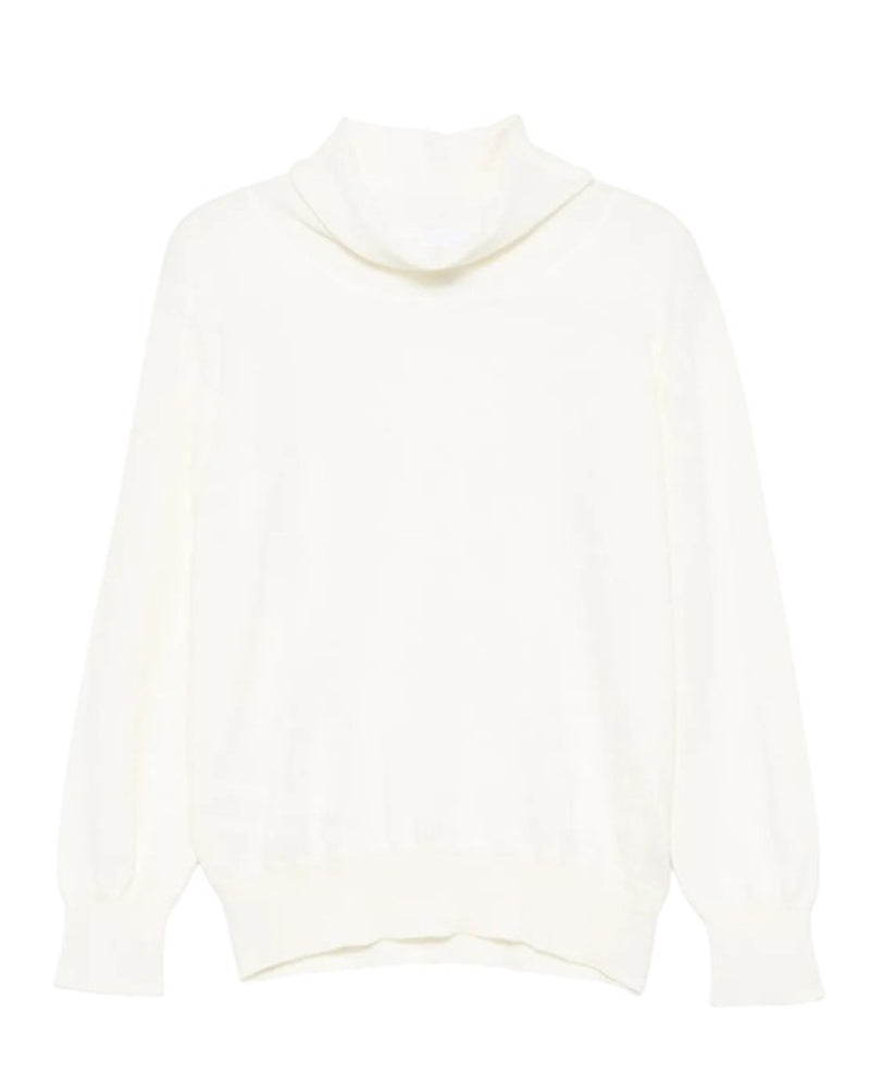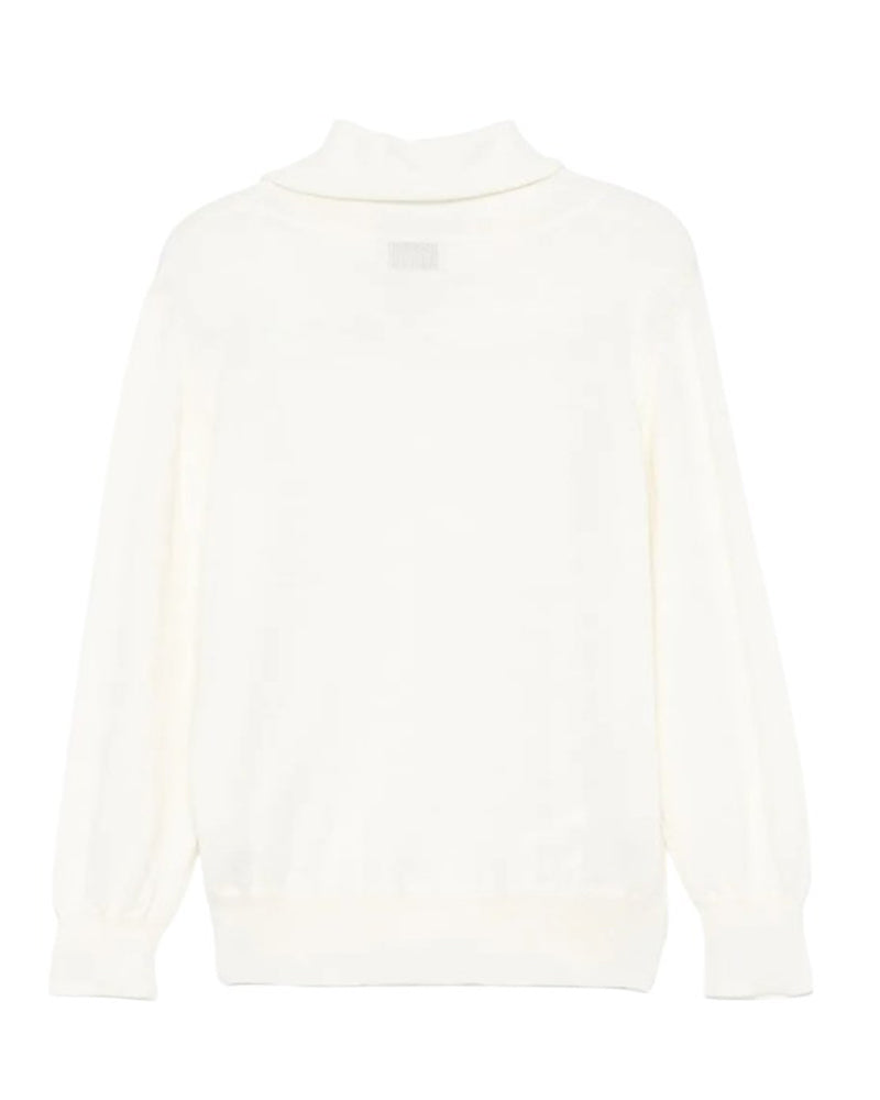 Maglia avorio realizzata in lana da bambina. Presenta colletto alto con design morbido, maniche lunghe e finiture a coste.