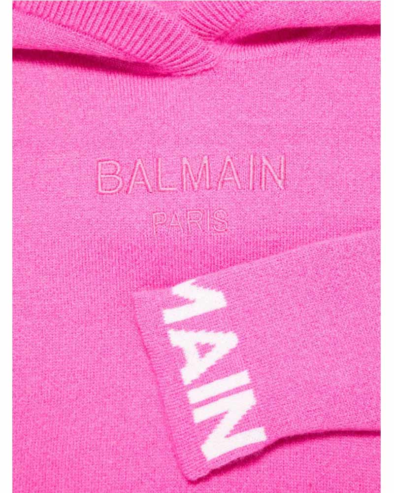 Balmain Maglia fucsia con cappuccio in lana BV9B10-Z2362