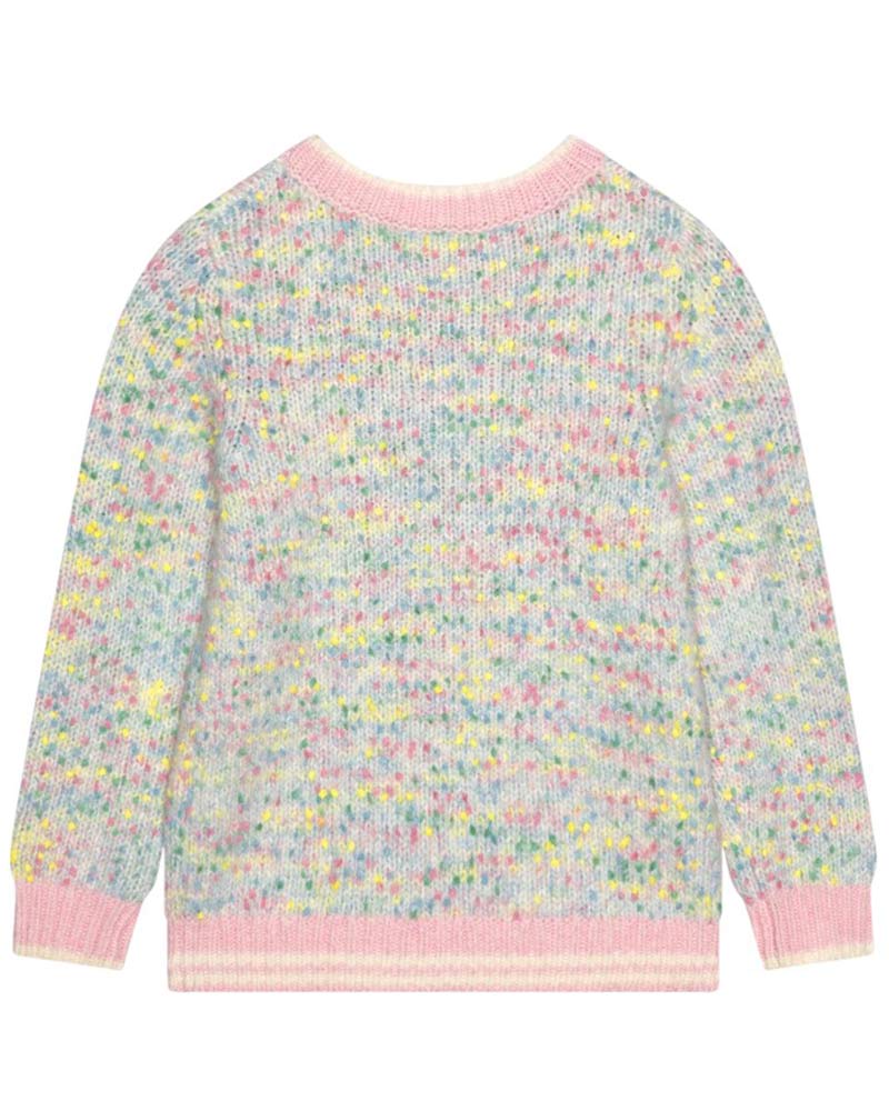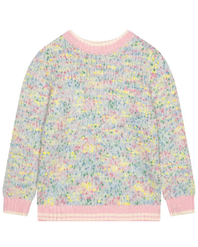 Maglia multicolor realizzata in misto lana da bambina. Presenta design con dettagli a micro pois in rilievo, collo tondo, maniche lunghe e finiture a coste.