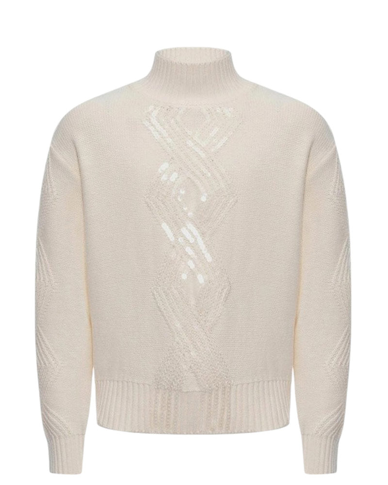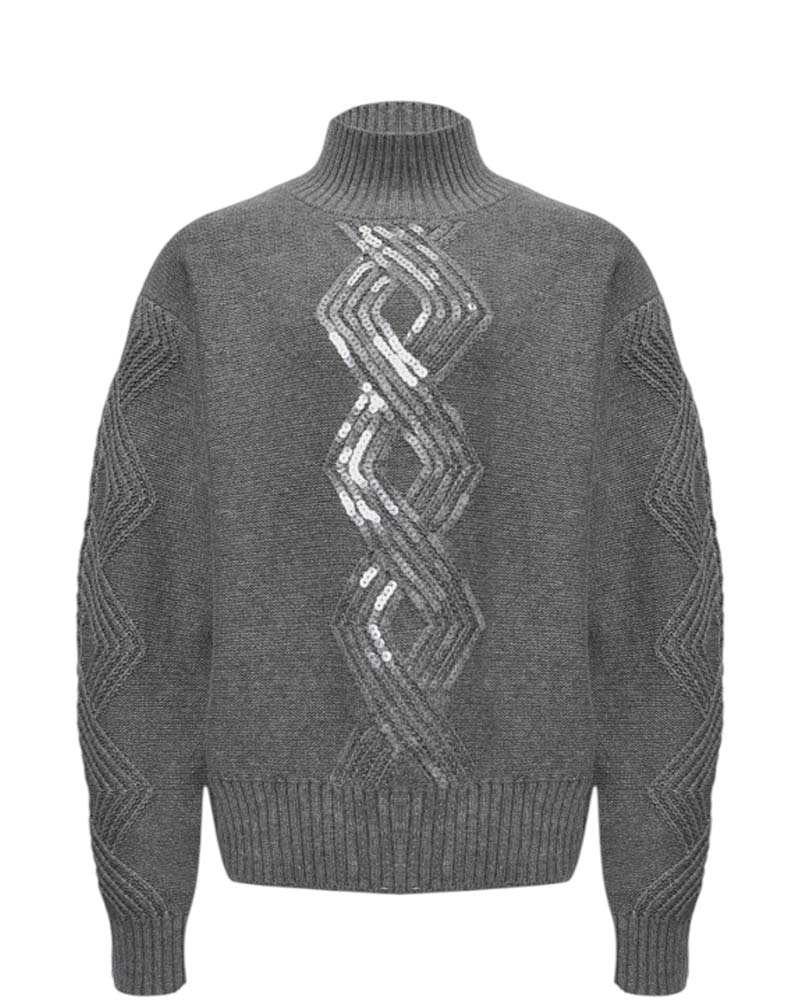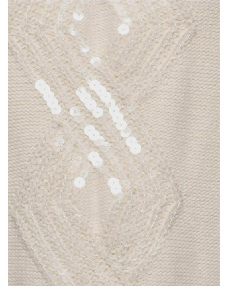 Maglia dolcevita in misto cotone e cashmere da bambina. Presenta collo alto, maniche lunghe e finiture a coste. È decorata con motivo in paillettes sulla parte anteriore.