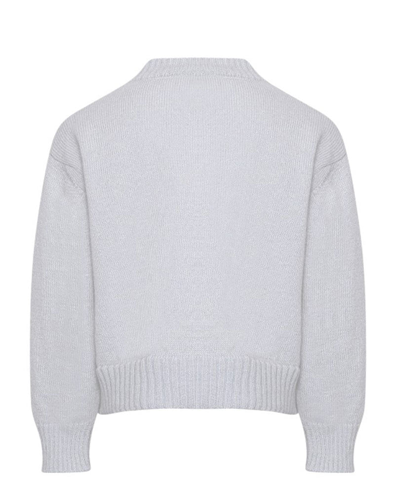 Maglia realizzata in misto lana mohair e cashmere. Presenta collo tondo, maniche lunghe e finiture a coste. È decorata con simbolo del brand ricamato sul davanti.