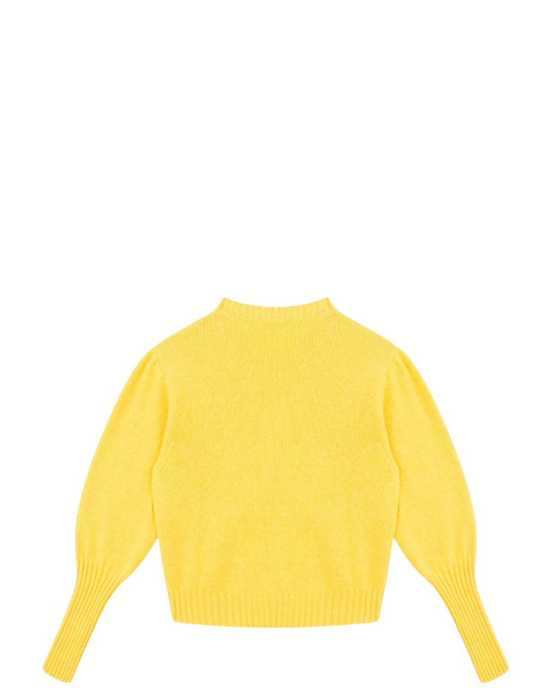 Maglia cropped realizzata in misto lana e cashmere da bambina. Presenta collo tondo, maniche lunghe a sbuffo, logo ricamato in rilievo sul davanti e finiture a coste.