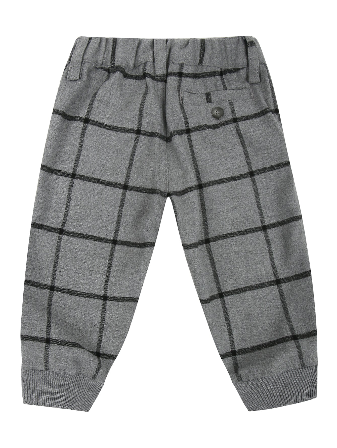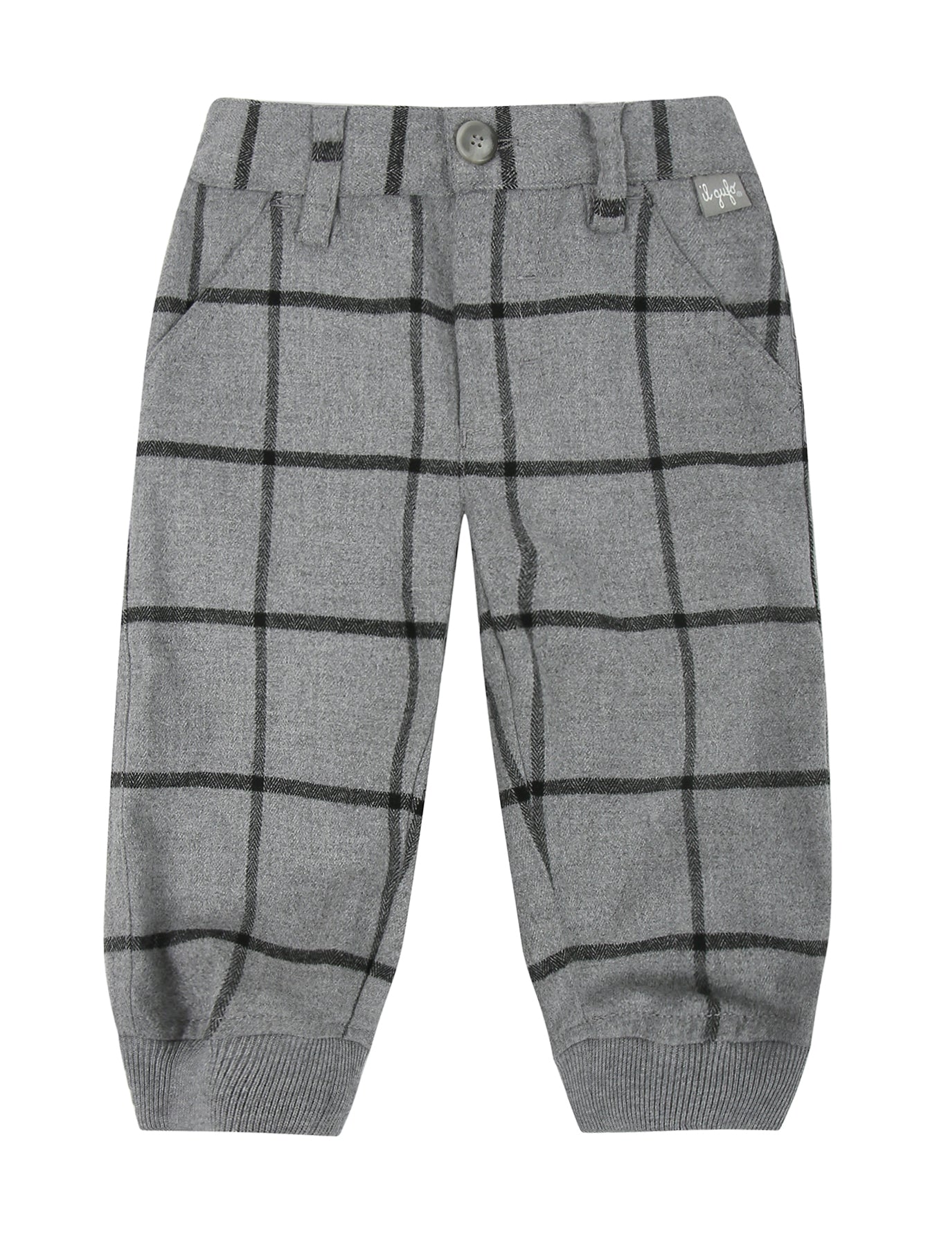 Pantalone fantasia a quadri, elastico in vita e alla caviglia.
