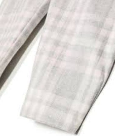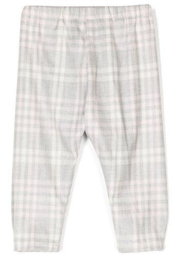 Pantalone in lana, fantasia a quadretti, elastico in vita.