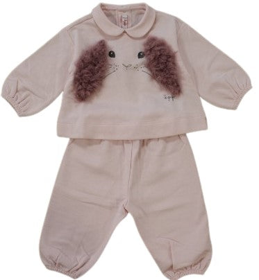 Completo formato da felpa con colletto e applicazioni, pantalone jogger con elastico.