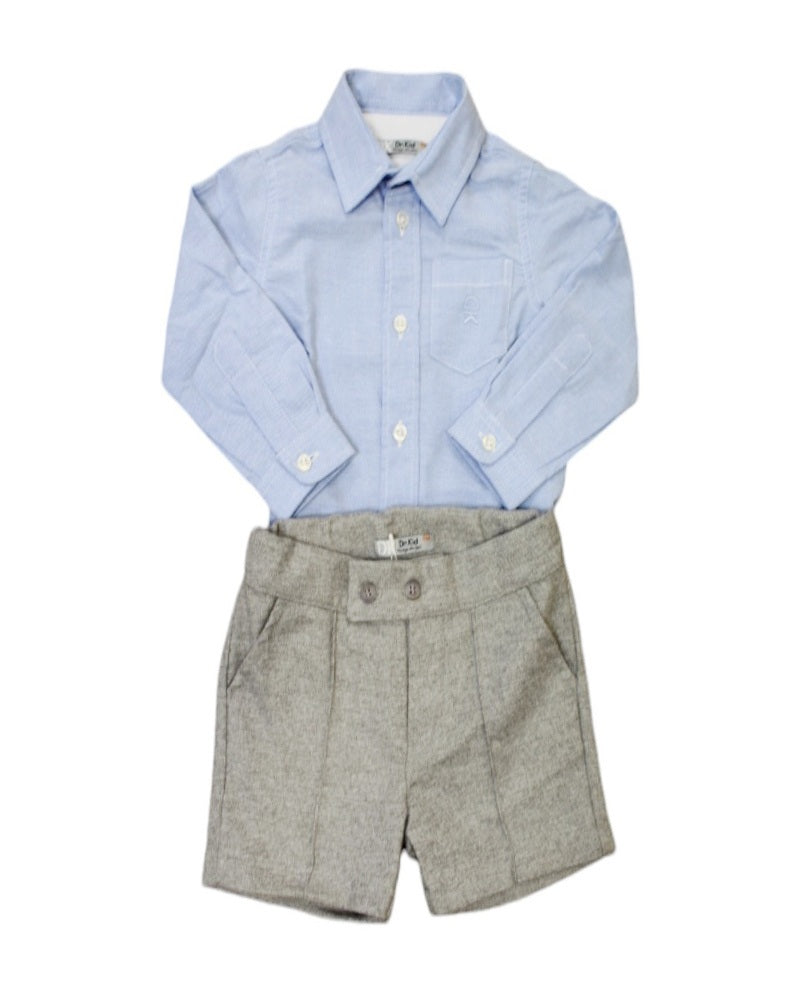 completo 2 pezzi pantaloncino corto in flanella camicia oxford azzurra