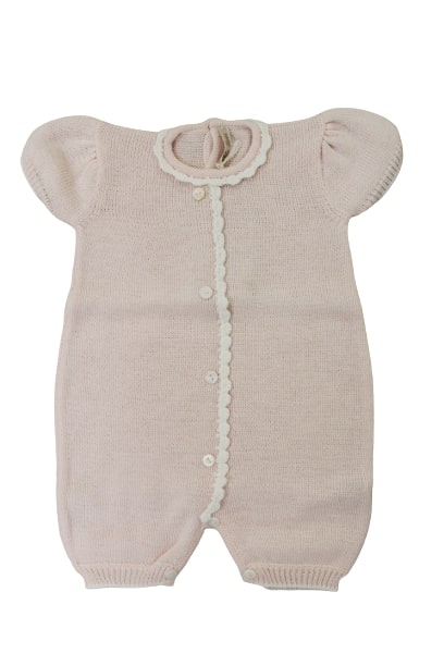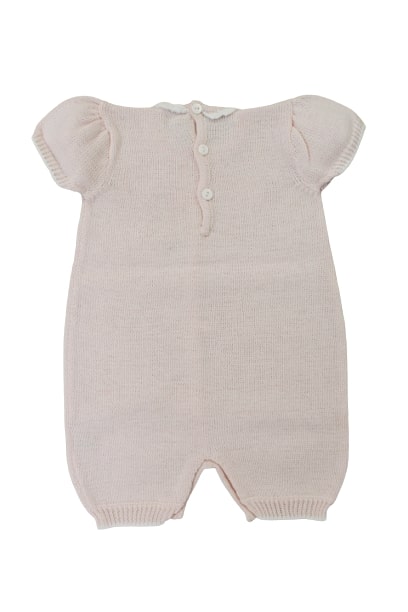 Pagliaccetto Little Bear in filo rosa con particolari bianchi.